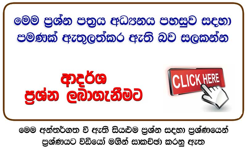 විශේෂ බහුවරණ ප්‍රශ්ණ පත්‍රය